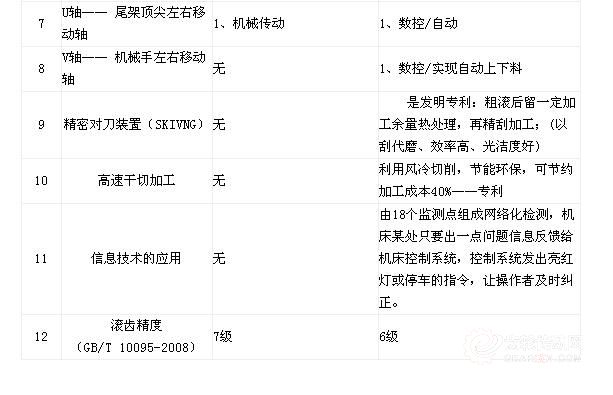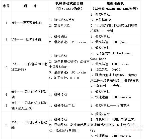 五、機械傳動式滾齒機與數控滾齒機的性能對照表