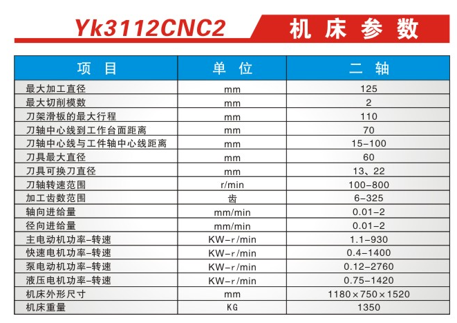 機床特點: YK3112CNC2數控滾齒機,實現工作臺徑向進給(X軸)和刀架滑板軸向進給(Z軸)的伺服控制。 主要用于直齒輪、斜齒輪、渦輪、鼓形齒輪、小錐度齒輪。 適用于汽車、摩托車